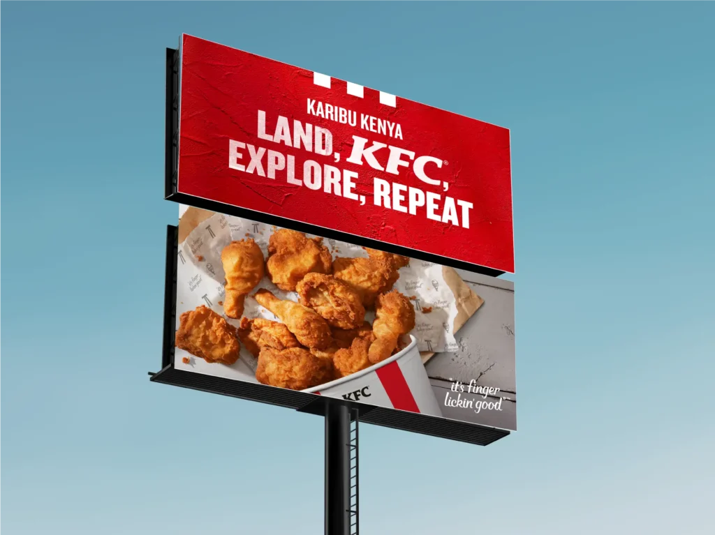 For KFC Kenya, we designed a clever billboard campaign that speaks directly to hungry passersby with a simple yet powerful narrative—Welcome and Goodbye.